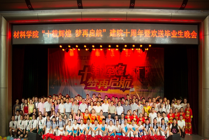 十载春秋,奋发图强;辛勤耕耘,桃李芬芳。6月6日晚,材料学院“十载辉煌,梦再启航”建院十周年暨欢送毕业生晚会在小礼堂举行。副校长赵俊伟和该院师生近千人共同观看了晚会。