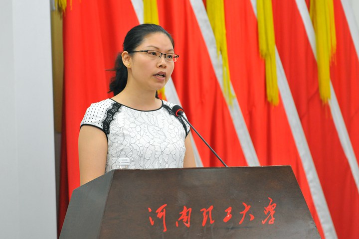 先进个人代表、资环学院党政办主任肖春艳发言