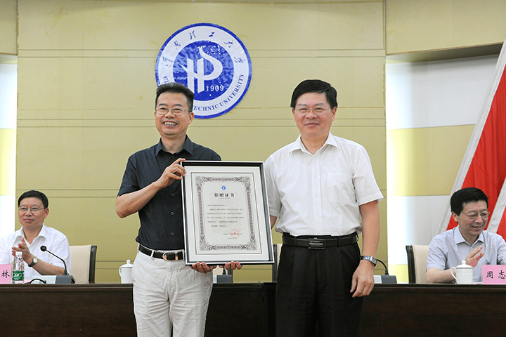 校长杨小林向郑炳旭颁发学校兼职教授聘书