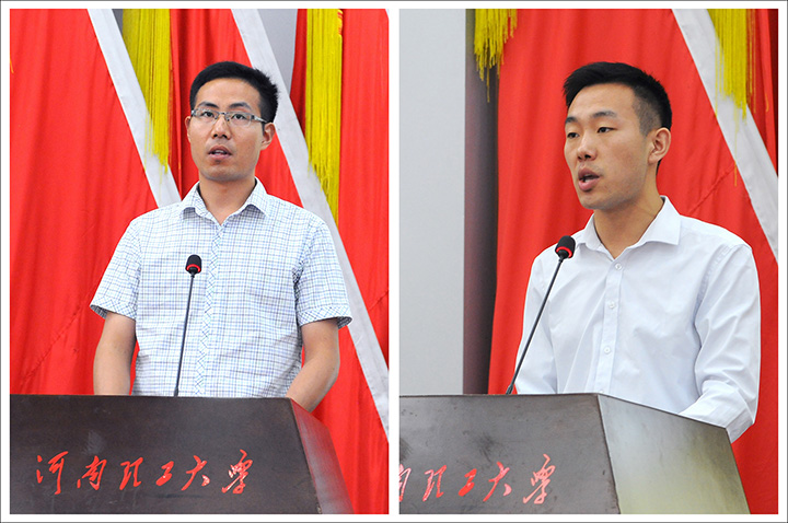 我校电气工程专业13级王志芳、安全工程专业13级董虎子分别代表获奖研究生、本科生发言。