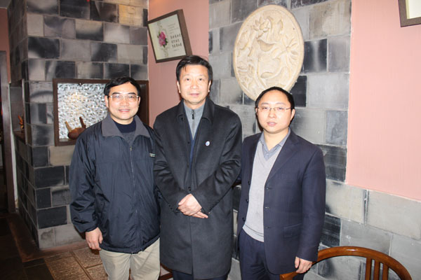 王裕清副校长与重庆校友会会长谢志江(左)秘书长熊先才(右)合影