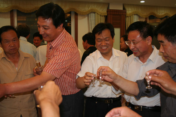 能源学院党委书记郭建卿、院长勾攀峰向老校友敬酒