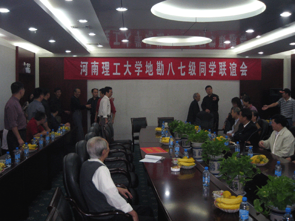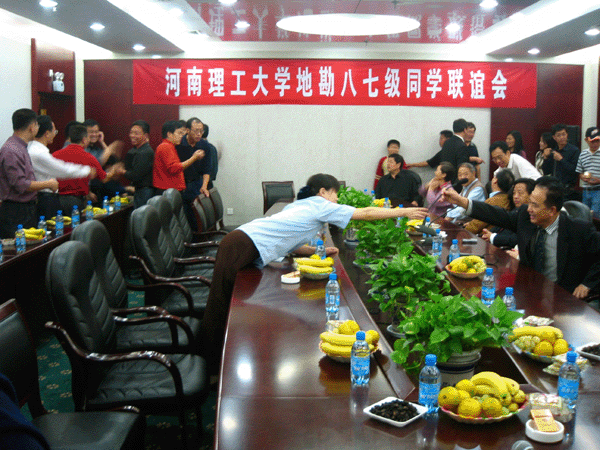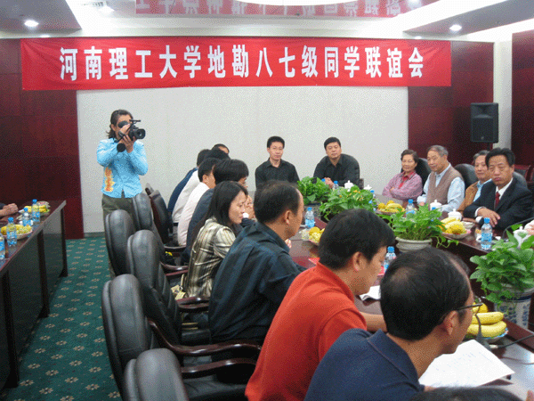 10月4日上午,正值国庆节举国欢庆的时候,原焦作矿业学院地勘专业87级同学毕业15周年联谊会在焦煤集团东方宾馆隆重召开了。参加会议的30多位校友和20多位教师欢聚一堂,会场情谊浓浓、热闹非凡。校长邹友峰,副校长周英,资环学院党委书记朱天明、院长胡斌到会表示祝贺。广大校友看到母校近年的巨大变化无不欢心鼓舞,充满了对母校的眷恋,表现出了对母校今后发展的极大关注。