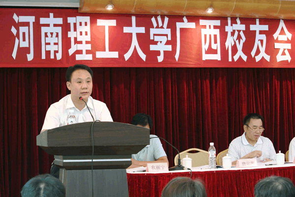 大会首先由校友总会秘书长王裕清副校长代表校友总会宣读了《河南理工大学校友总会关于同意召开广西校友会成立大会的批文》,测量84级校友、南宁市建筑管理处科长、高级工程师吴校成作了《关于河南理工大学广西校友会筹备情况的汇报》的报告,采煤78级校友、广西城建咨询有限公司董事长、总经理罗静斌作了《关于河南理工大学广西校友会章程起草的说明》的报告,吴校成校友宣读了广西校友会筹委会推荐人选名单并表决通过理事、常务理事、秘书长、副会长、常务副会长、会长建议名单,宣布乐广西校友会筹委会决定聘任名誉会长。