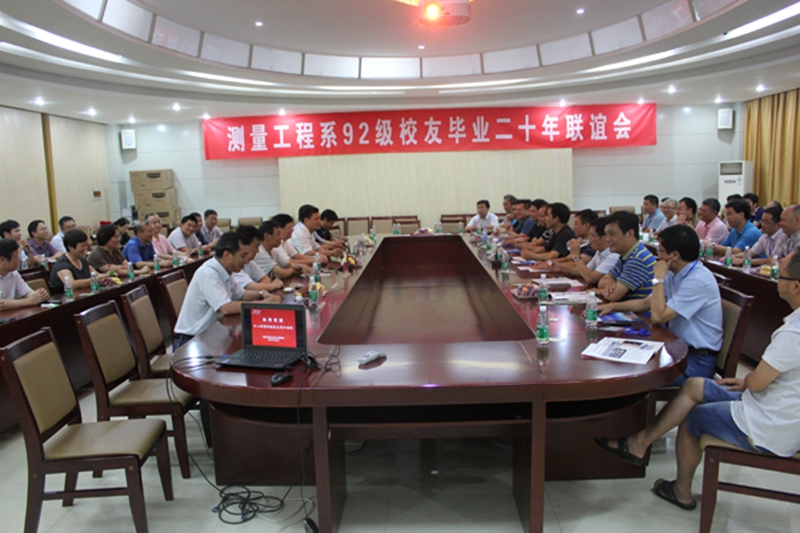 二十沧桑情依旧;桃李携手恩师情。2016年8月6日,测绘与国土信息工程学院矿山测量专业92级四十多位校友从全国各地重聚母校,于测绘学院一楼会议室举办毕业二十周年联谊会。校党委书记邹友峰、外联处处长杨韶昆、测绘学院党委书记郭增长、院长魏峰远、资环学院党委书记张贵江以及十多位任课教师参加联谊会,联谊会由92级校友梁洪有主持。